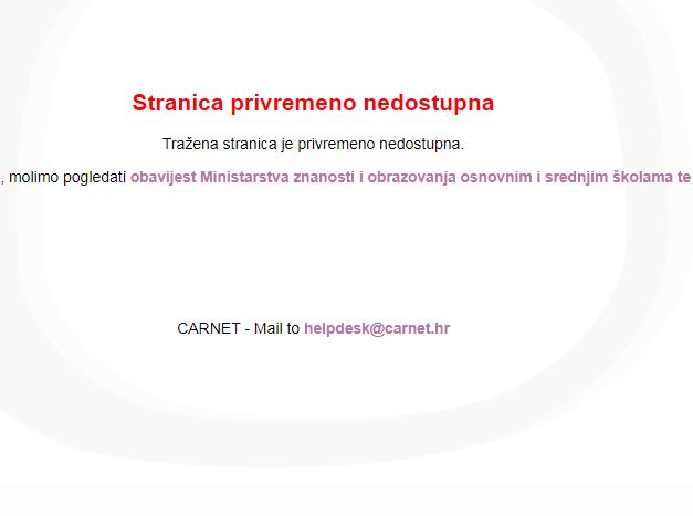 Kako piše portal Srednja.hr, oko 17.50 sati ‘popadale’ su stranice osnovnih i srednjih škola u Hrvatskoj, a moguće usljed opterećenja u korisničkoj potrazi za informacijama. “Zbog prevelikog opterećenja, pale su stranice škola diljem zemlje. Portal Telegram.hr ima izjavu od CARNeta koji su rekli da ‘Nadležan odjel radi na otklanjanju poteškoća’ i da ne mogu precizirati kada će problem biti otklonjen. Podsjetimo, slično se i dogodilo na početku štrajka” – piše Srednja.hr.