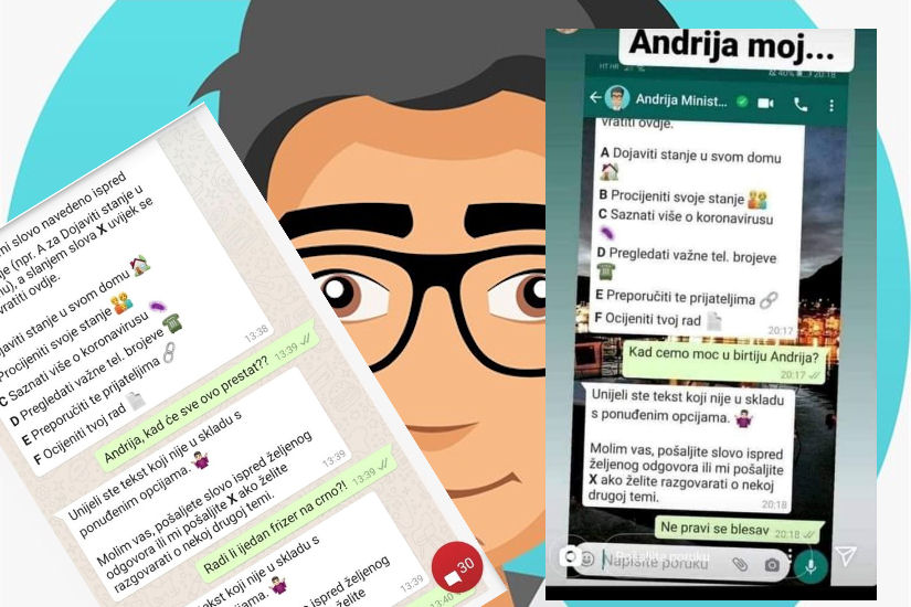 Andrija je prvi digitalni asistent na bazi umjetne inteligencije koji svojim nadljuskim snagama pomaže u borbi protiv koronavirusa. Andrija je digitalni osobni asistent namijenjen svakom hrvatskom građaninu, a s njim možete komunicirati na WhatsAppu. Andrija odgovara na pitanja građana, a kako bi im pružio mogućnost ‘detekcije’ eventualne zaraze koronavirusom i usmjeri ih na mjerodavne. Ali, Andrije pojedincima služi i za zabavu…