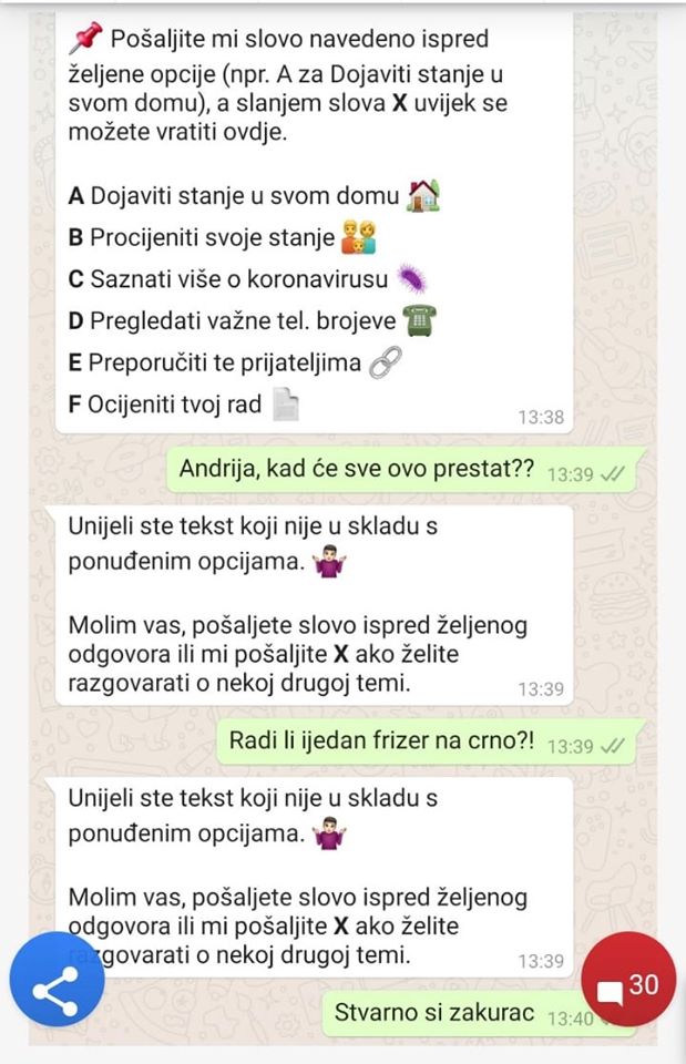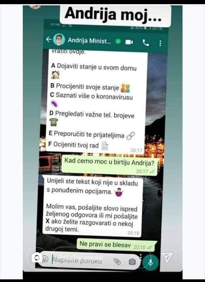 Radi li frizer na crno? Ima li koja otvorena birtija? – samo su neka od pitanja, a na koja Andrija odgovara kako takav unos nije predviđen..