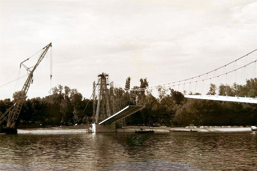 – Izgradnja pješačkog mosta, iako sam ja slikao, nemam nikakvih detalja, prošlo je puno vode ispod Drave – napisao je autor fotografije Boris Beyer na Facebook stranici Osječki vremeplov, objavivši fotografiju Pješačkog mosta u Osijeku u izgradnji, tadašnjeg Mosta mladosti.