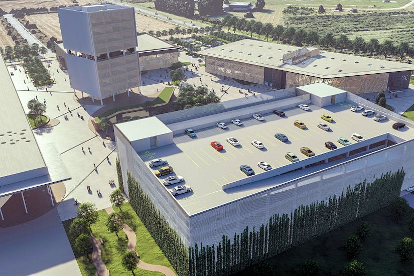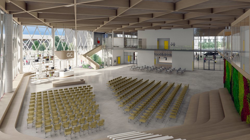 Gospodarski centar činit će više objekta različitih namjena koji će imati ukupnu površinu oko 75.700 m2 bruto građevinske površine zgrada te 35.000 m2 vanjskog otvorenog izložbenog prostora. Nakon Zgrade 1. kao multifunkcionalnog objekta, u nastavku projekta predviđena je gradnja kongresnog centra, nadzemne garaže, poslovno-obrtničkog aneksa, poslovnog toranja s uredima te unutarnjeg izložbenog prostora (pet spojenih hala) za sajmove. Uz zatvorene predviđaju se i otvoreni izložbeni prostori i demonstracijski izložbeni prostori, parkirališni prostori, pristupne ceste i putevi te sadržaji na zelenim površinama za posjetitelje, park, dječja igrališta.