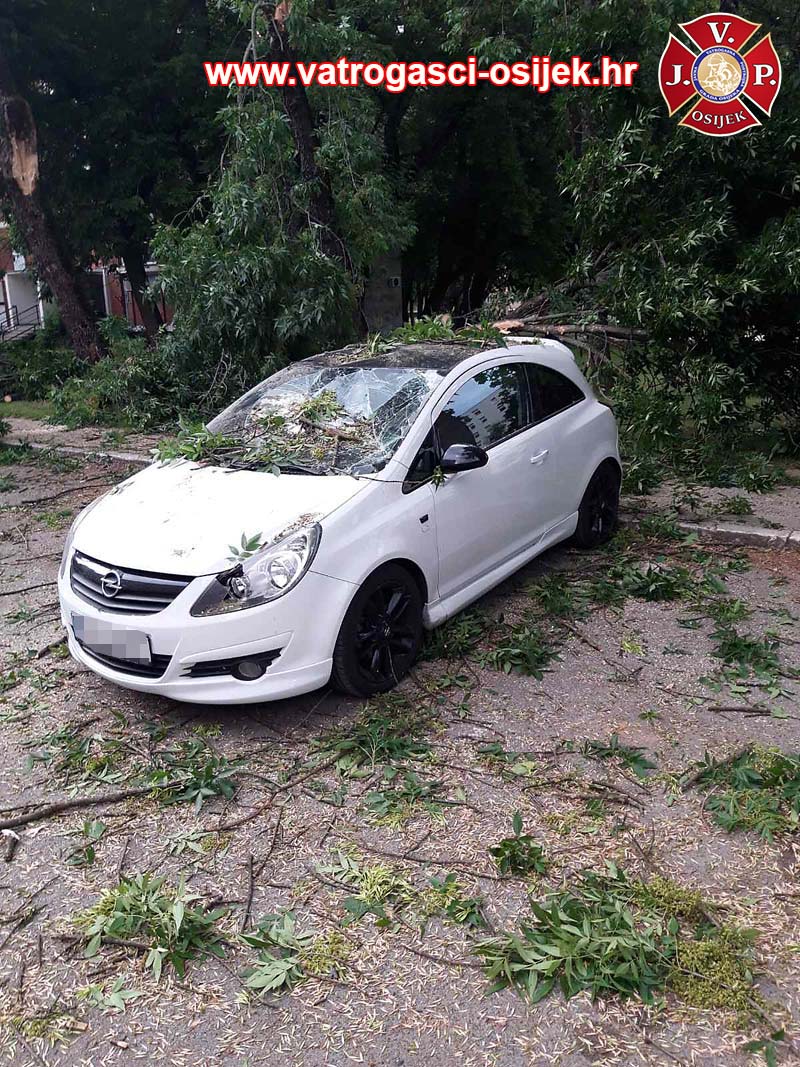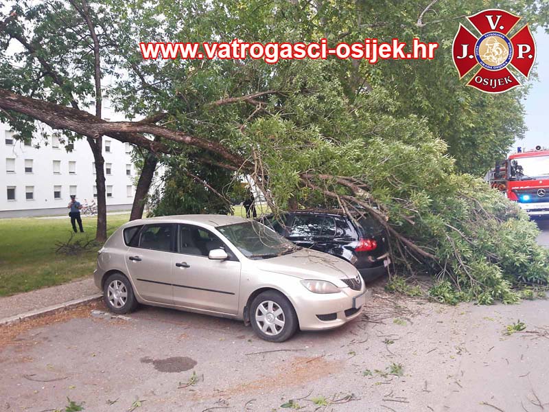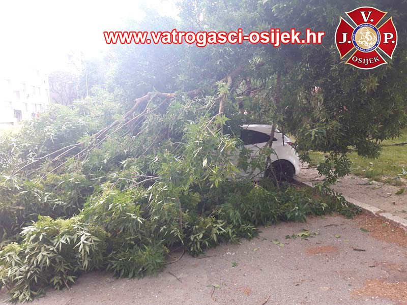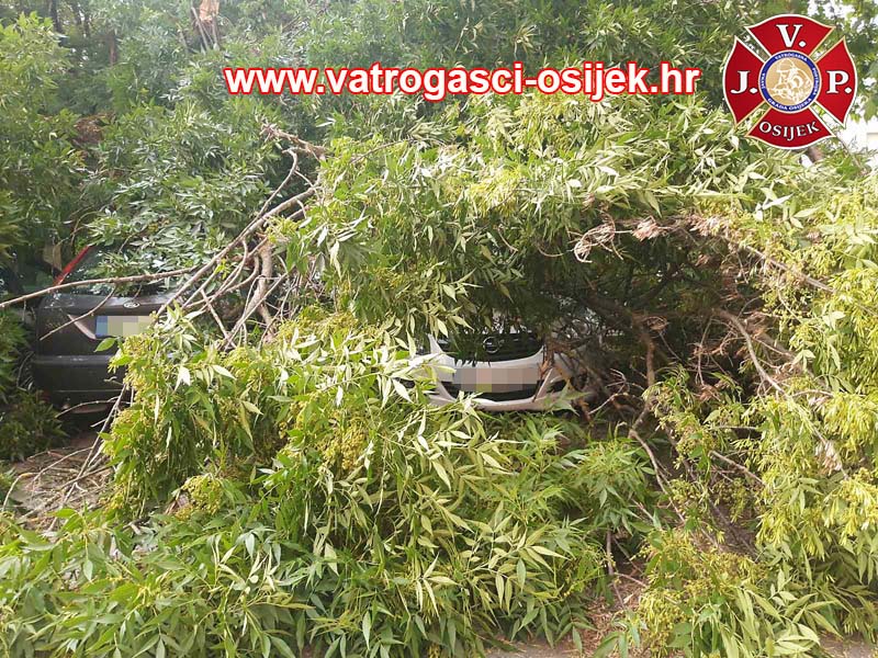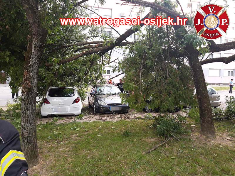 U Ulici Ivana Gorana Kovačića je odlomljena grana stabla uzrokovala veću štetu na više automobila. Oko 19 sati jučer su pozvani vatrogasci ‘spasiti stvar’ koliko se može. Bilo im je u susjedstvu, na ulazu/izlazu sa Sjenjaka, kod Studentskog doma, nedaleko Svačićeve ulice, prostorija JVP Osijek.
