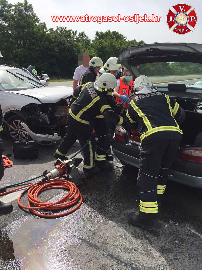 – Po dolasku na mjesto intervencije zatekli smo djelatnike HMP gdje pružaju pomoć unesrećenim osobama i obavljaju imobilizaciju. Uz dogovor s djelatnicima HMP s hidrauličnim alatom isjekli smo središnji stup automobila i oslobodili pristup unesrećenoj osobi, koju zajedno s djelatnicima HMP spašavamo iz automobila. Nakon toga spašavamo još jednu ozljeđenu osobu i predajemo djelatnicima HMP. Pregledamo oba automobila i skidamo kleme s akumulatora – pišu vatrogasci o detaljima intervencije.