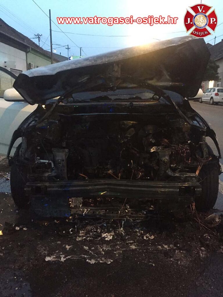 - Odmah smo pristupili gašenju i lokaliziranju nastalog požara vitlom za brzo gašenje, a nakon potpunog gašenja nastalog požara pregledali unutrašnjost automobila te utvrdili da nema opasnosti od ponavljanja požara - javljaju iz JVP Osijek