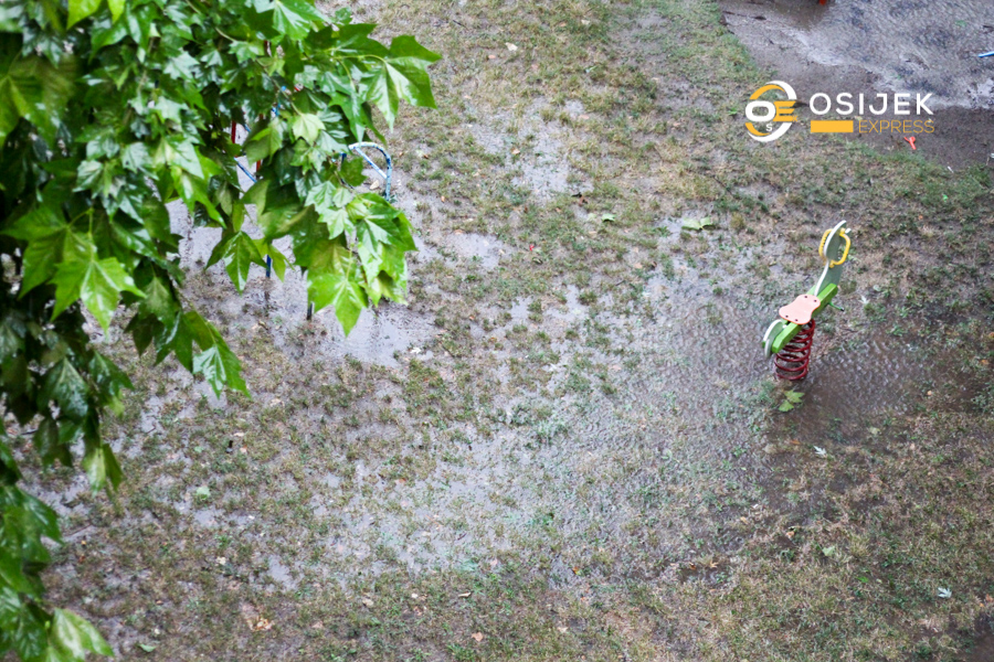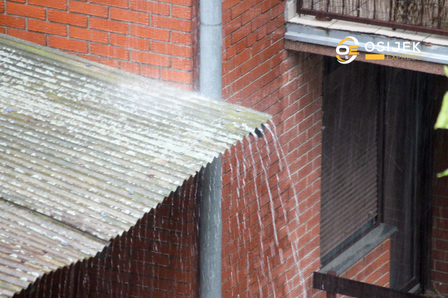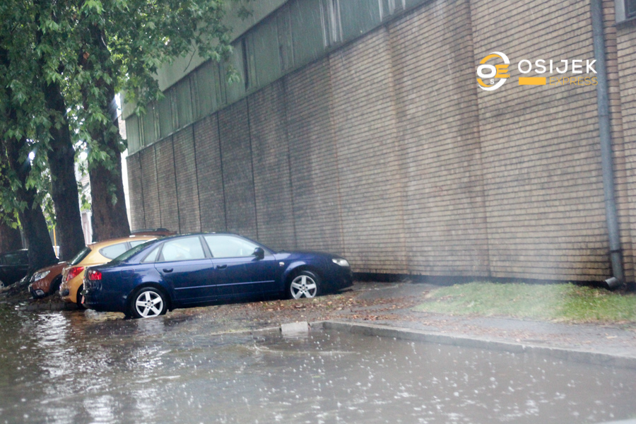 Naime, iako kiša još pada u Osijeku, ‘crni zbroj’ za subotu glasi vjetrom otkinuti krov zgrade u Gupčevoj ulici, polomljena stabla, 300 poziva službi 112, ispumpavanje 50-tak i više podruma u Osijeku, automobil u rupi koja se stvorila natapanjem tla kišom…