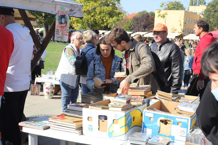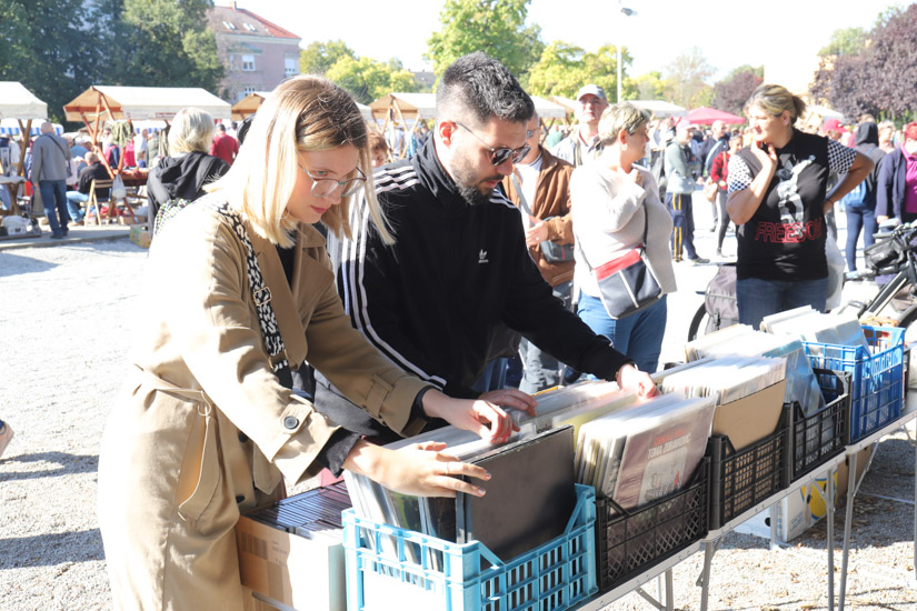 Fotografirajući sajam vidjeli smo kako se prilično traže ploče, ‘glazba u kolekcionarskom obliku’. Brojni su pregledali kutije ploča na više štandova, prebirali… Sjajno su se prodavali i opet hrana i piće, langošice, ali nije rijedak slučaj kako su pojedinci sa štandova odnosili kupljene antikvitete pod rukom, one većih dimenzija…