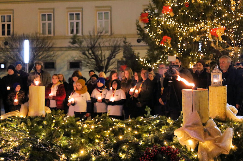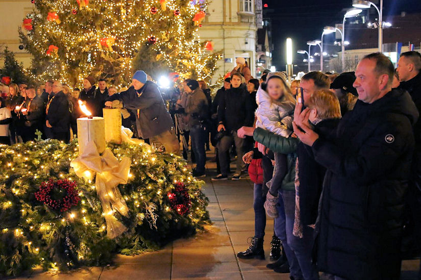 U predivnoj, ne odveć studenoj večeri, gradonačelnik Osijeka upalio je i posljednju, četvrtu svijeću na adventskom vijencu ispred osječke konkatedrale na Trgu pape Ivana Pavla II. U ‘toplom’, božićnom okruženju, uz glazbeni trenutak, Ivan Radić je upalio svijeću betlehemskim svjetlom, a kojeg su osječki izviđači donijeli iz Zagreba.