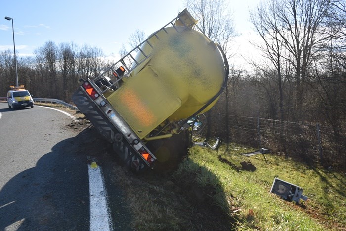 Izvrnula se cisterna na autocesti (A3) u Slavoniji! U zanošenju udar u smjerokazni stupić…