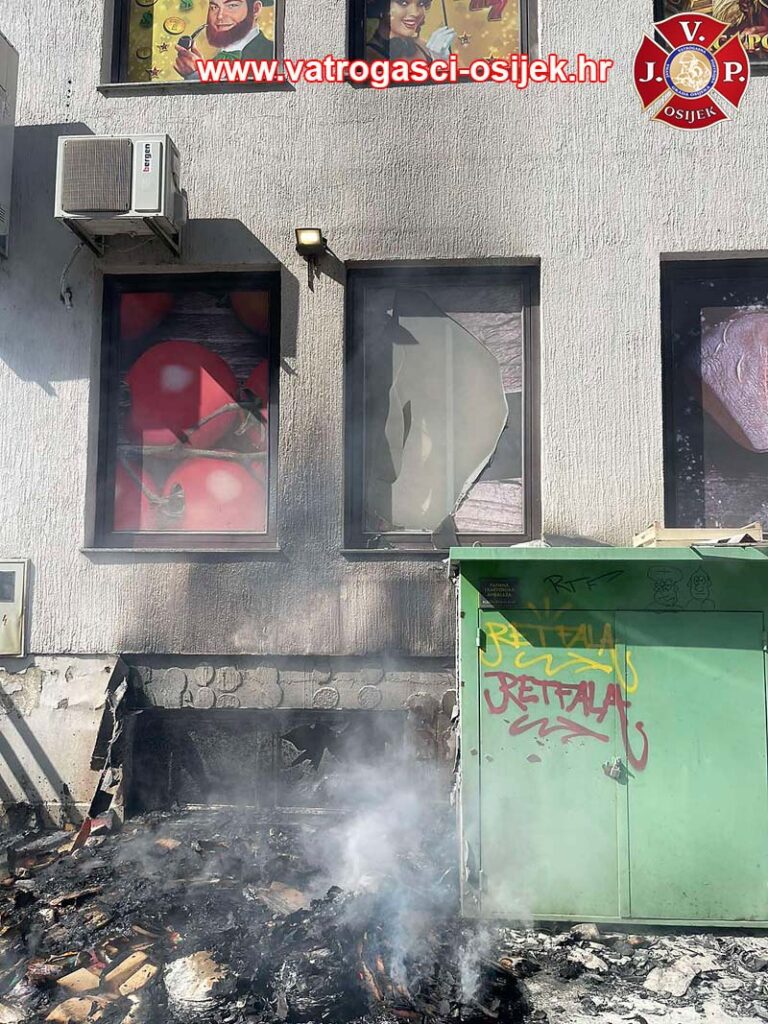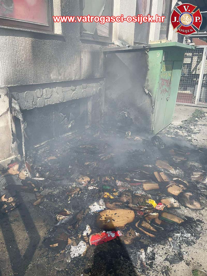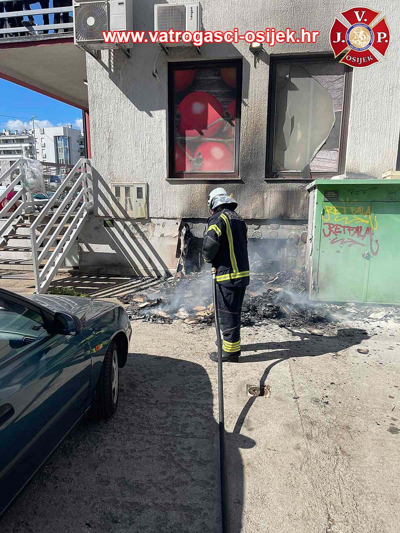 Iako vatrogasci JVP Osijek ne otkrivaju lokaciju, s fotografija je razvidno kako se požar, o kojem izvještavaju istima, dogodio u Naselju Ljudevita Posavskog u Osijeku, odnosno u ‘Žutom naselju’, s bočne strane zgrade u kojoj je smještena trgovina Konzuma.
