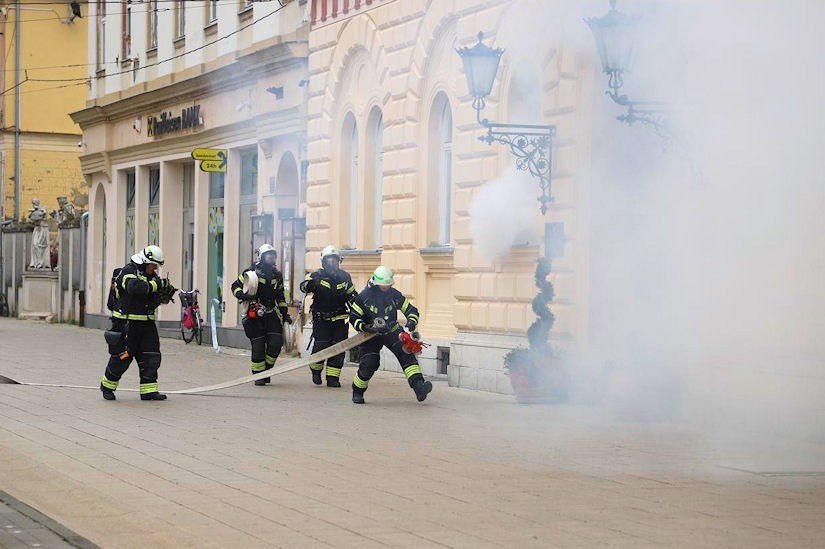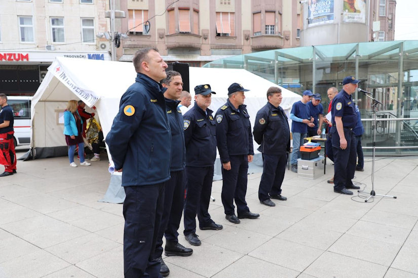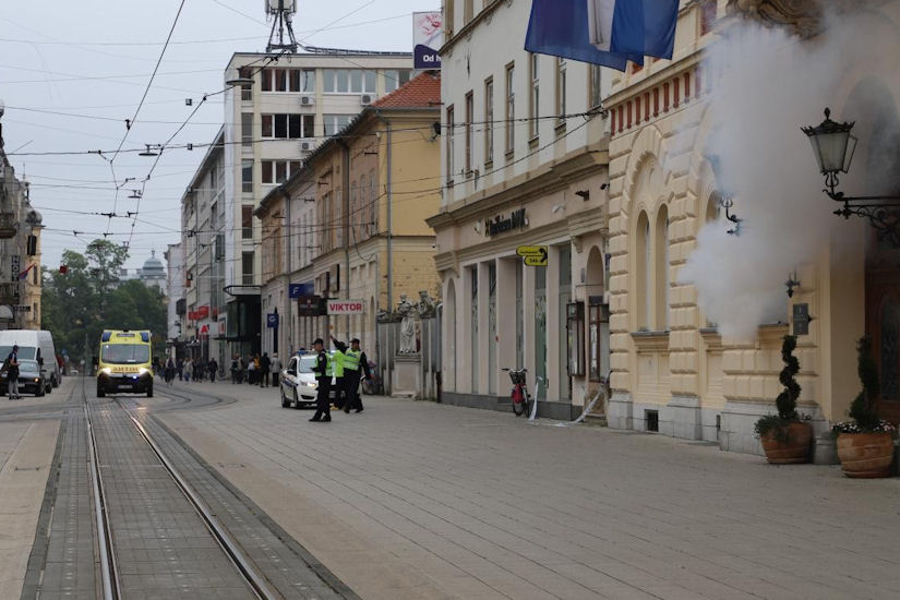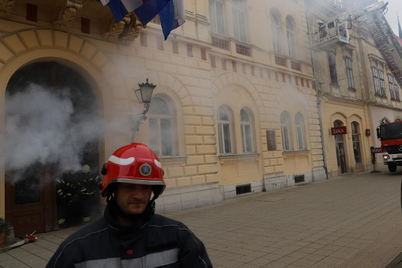 Istrčali su djelatnici Županije na Trg Ante Starčevića po pojavi ‘dima i požara’, korišteni su zvučni signali opasnosti i prolaska vozila interventnih i hitnih službi, a vatrogasci su i iskakali kroz prozore zgrade…
