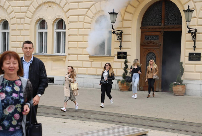 Istrčali su djelatnici Županije na Trg Ante Starčevića po pojavi 'dima i požara', korišteni su zvučni signali opasnosti i prolaska vozila interventnih i hitnih službi, a vatrogasci su i iskakali kroz prozore zgrade...