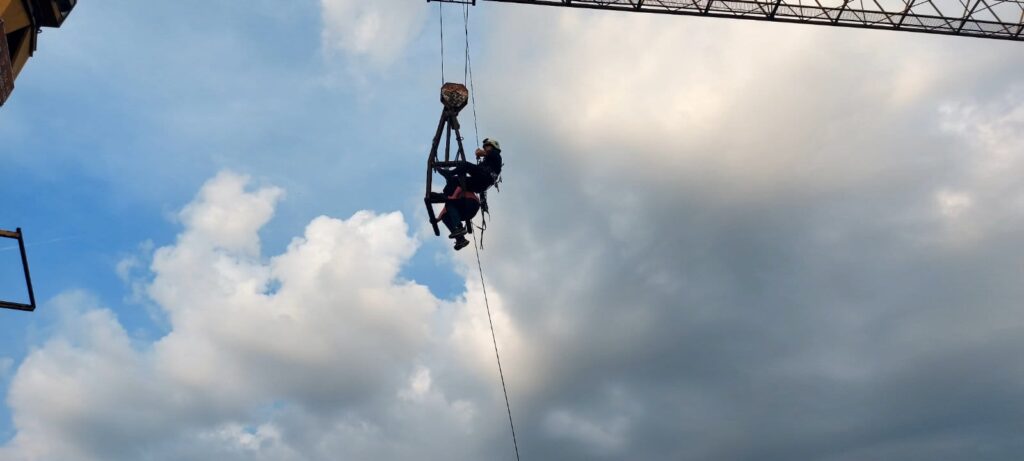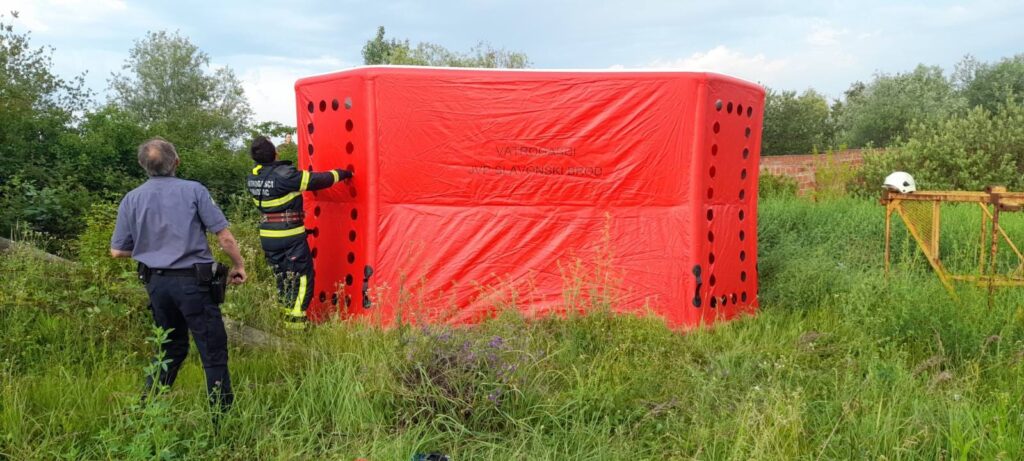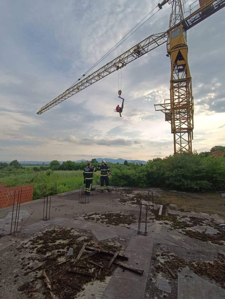 – Kolege iz JVP su brzo stigli na mjesto intervencije te smo zajedničkim snagama krenuli u spašavanje osobe. Jedan član JVP Slavonski Brod opremljen alpinističkom opremom je preko krana izvršio spuštanje do unesrećenog, dok smo mi postavili zračni jastuk ispod krana, za svaki slučaj.