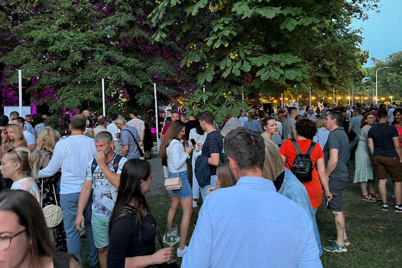 I u 23 sata je perivoj bio krcat, redovi za langošice od više metara, čaše s vinom skoro svim u rukama, glazba na dvije lokacije, a ljudi su još pristizali. I s promenade i s avenije. I zamjenik gradonačelnika se još ‘minglao’ oko 23 sata, protokol iz županije također, direktorica TZ-a koračala po cijelom perivoju… Ipak je to u njihovoj organizaciji. Moralo je sve biti ‘top-top’. U lounge zoni je bila jednaka gužva. A vaš se autor onamo nije ni htio ‘zavlačiti’ sinoć. Hot dog i malo vina držalo me je po strani 🙂