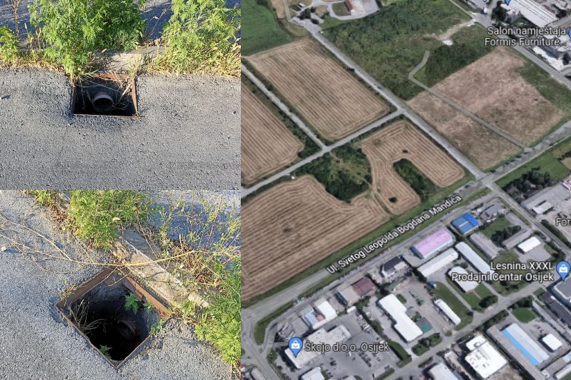 Dakle, uz desni rub ceste, iz smjera sportskog aerodroma na Čepinskoj prema Mallu, desetak je ‘rupa’ za oborinsku odvodnju, desetak ‘šahtova’, svi bez poklopca. Obzirom da cesta nije prometna, ne odima se to kao osobita opasnost, ali zapravo jest. Jer, kotač bilo kojeg prijevoznog sredstva itekako bi osjetio takvu rupu, a biciklist sasvim sigurno i pao…