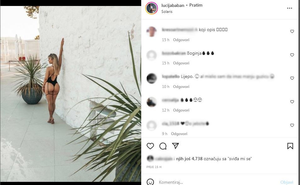 A njezine ‘fotke’ svakako plijene pozornost. Samo ova fotografija je u 16 sati od objave otišla na prlibližno 5.000 ‘lajkova’. Luciju Baban, inače, na Instagramu prati oko 115.000 osoba.