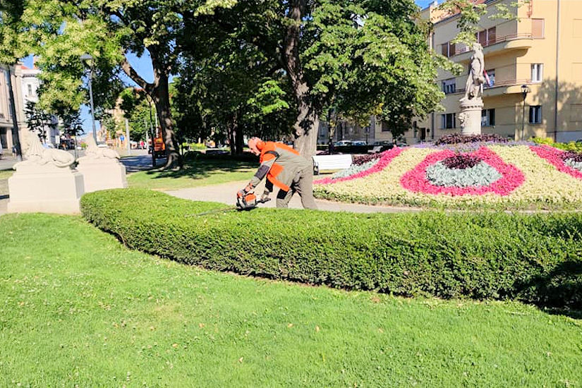 Najljepši park u Hrvatskoj po izboru čitatelja i glasača iz cijele zemlje, a na portalu Gradonačelnik.hr, za koji su i radnici Unikoma dobili nagrade na inicijativu gradonačelnika Osijeka Ivana Radića, da bi ostao najljepši, zahtjeva svakodnevne radove, ‘intervencije’… Tako je bilo i jučer. Nema odmora. Šišala se ‘živica’.