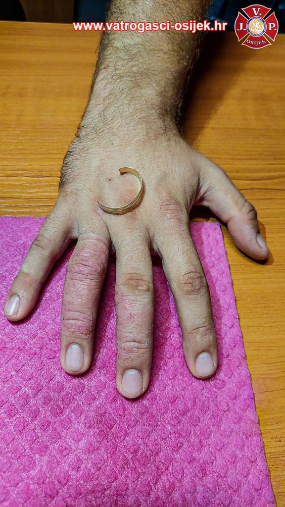– Skidanje prstena sa natečenog prsta – naslovili su osječki vatrogasci svoju objavu intervencije u ponedjeljak u Osijeku, a gdje fotografijama svjedoče kako su uistinu spasili cirkulaciju izvjesnom, dozvoljavamo po fotografiji, muškom prstu.