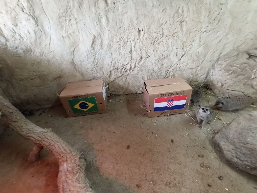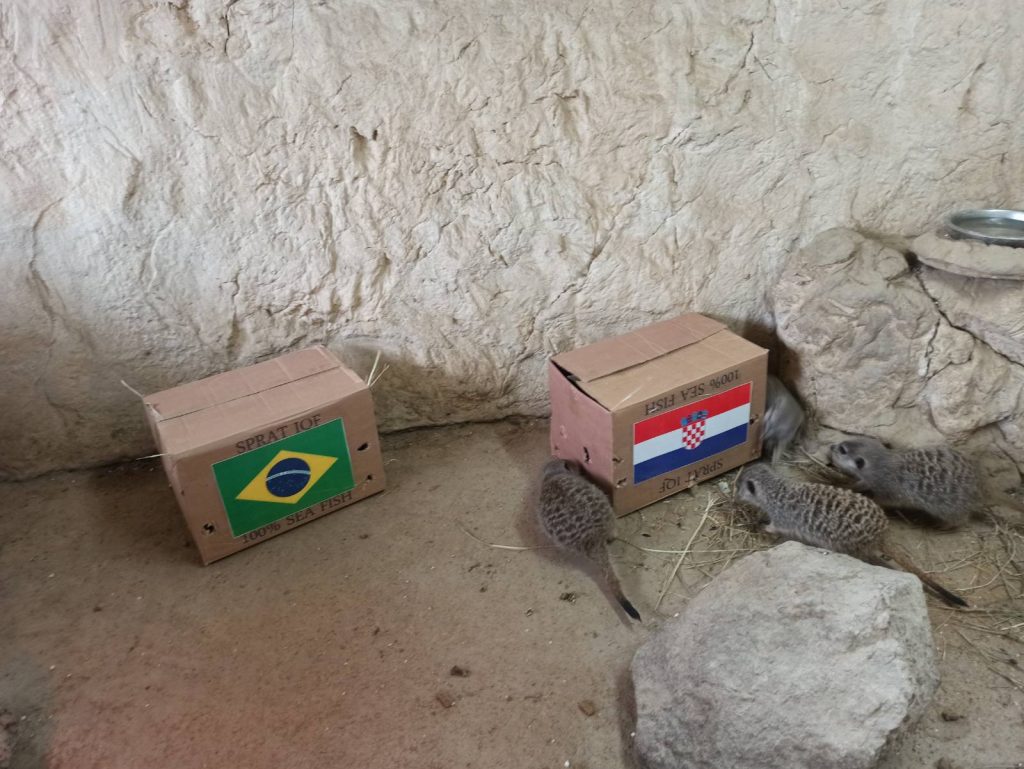 – Već i ptice na grani znaju – Hrvatska i Brazil igraju u četvrtfinalu Svjetskog nogometnog prvenstva od 16:00 na stadionu Education City u Al Rayyanu. Naravno, i mi u ZOO-u s nestrpljenjem očekujemo ovaj spektakl godine, sraz sa svjetskom nogometnom velesilom, te smo za prognozu rezultata odlučili upitati uvijek raspoložene “pustinjske bandite” – merkate – javljaju iz ZOO vrta, što je uvodnik u još jednu prognozu stanara osječkog ZOO vrta, a koji su do sada, izuzimajući žirafu, uglavnom pogađali ishod utakmice…