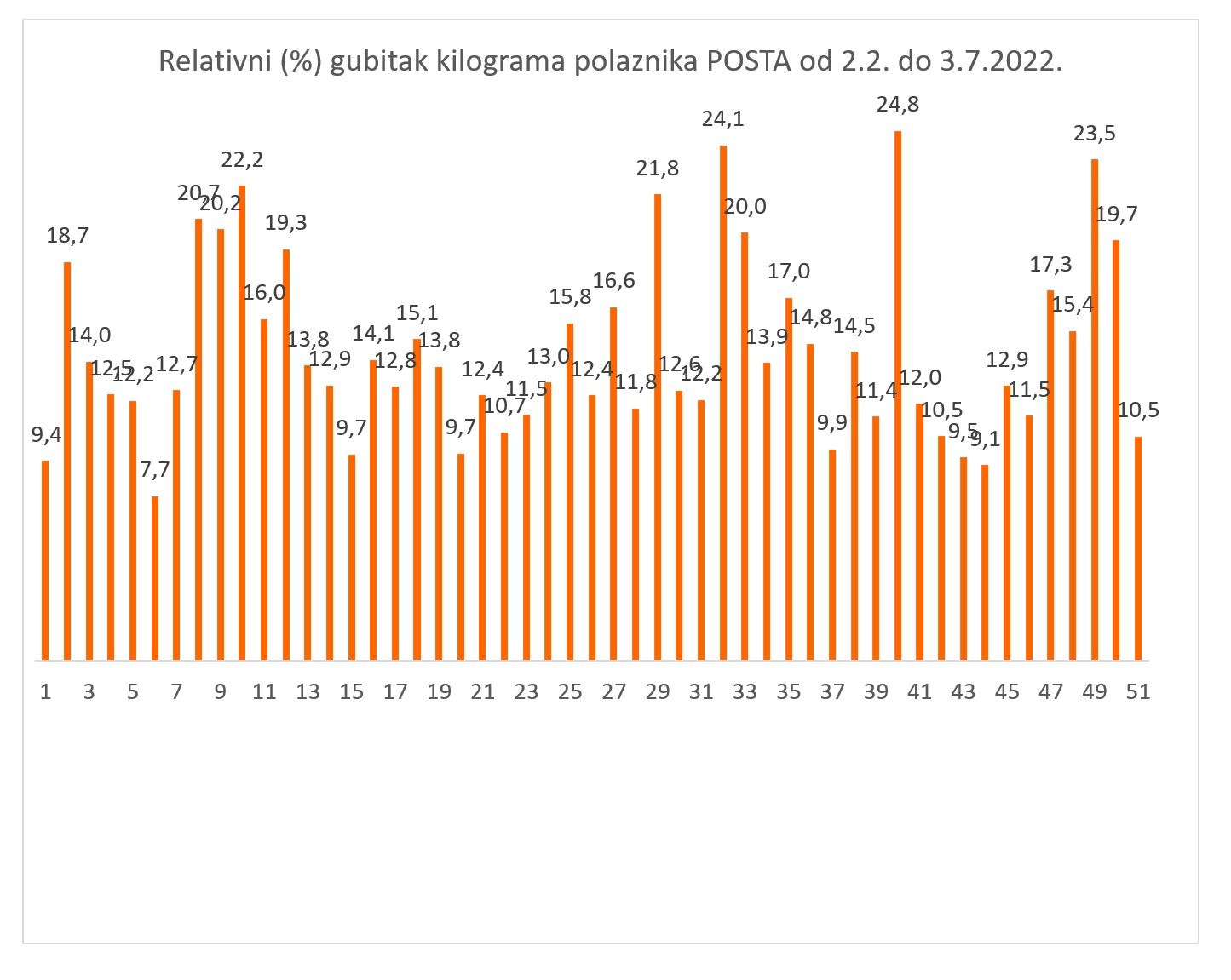 – Posebno su vrijedni i rezultati polaznika koji su savjesno provodili program te ostvarili dojmljiv gubitak kilograma. Među muškarcima se ističu dva polaznika: jedan koji je tijekom programa (za 5 mjeseci) smršavio 45,8 kg (24,8 %) te drugi koji je smršavio 33,9 kg (24,1 %), a među polaznicama gospođa koja je smršavjela 24,2 kg (23,5 %), te druga koja je smršavjela 23,4 kg (22,2 %).