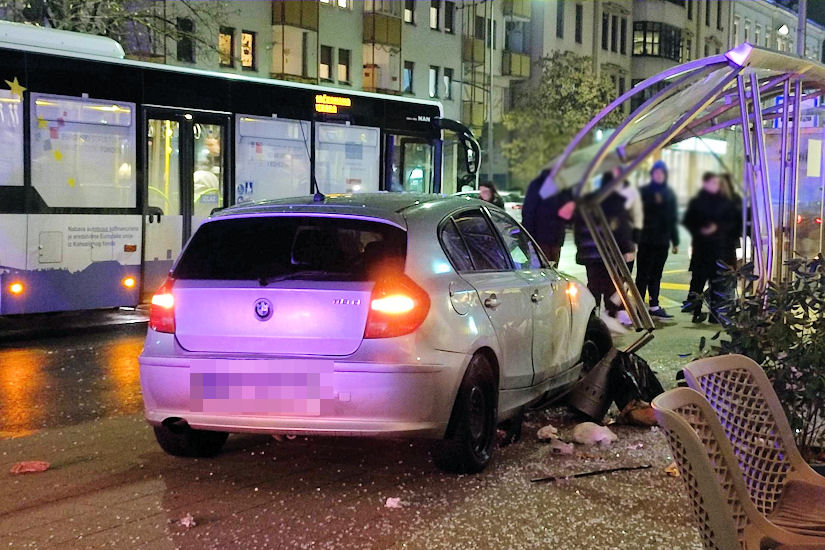 FOTO & VIDEO Troje ozlijeđenih! BMW-om raznio autobusnu stanicu u centru Osijeka! Učenici na stanici!?