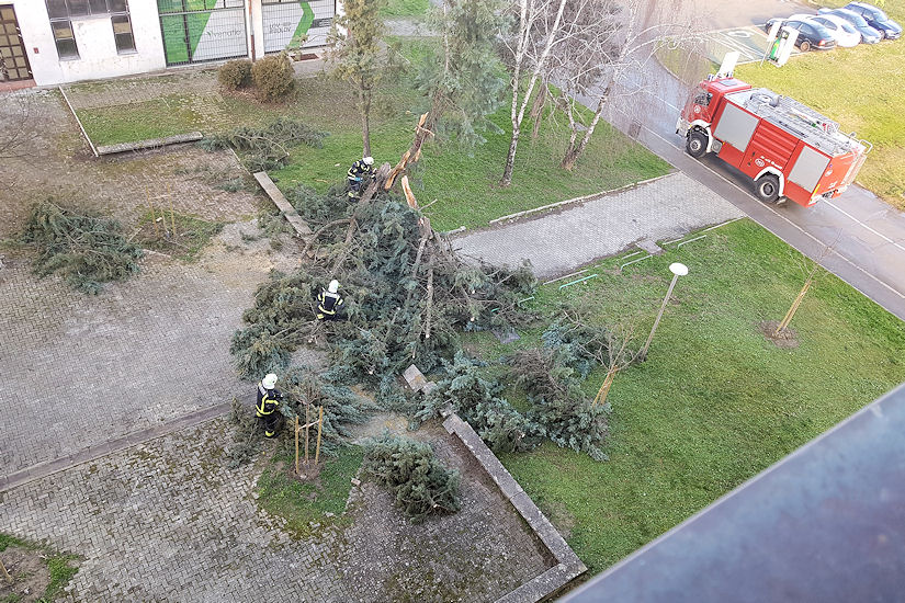 Vatrogasci Jagodnjaka – intervencija zbog pada stabla na školu u Jagodnjaku.