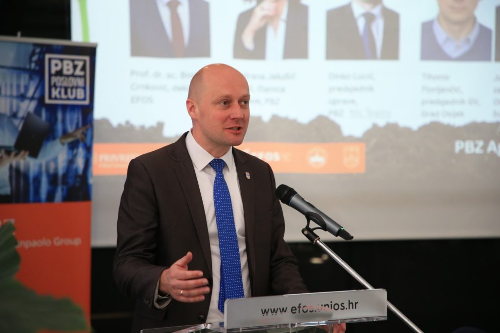 Sudionicima Konferencije uvodno su se obratili dekan Ekonomskog fakulteta u Osijeku prof. dr. sc. Boris Crnković, predsjednik Uprave PBZ-a Dinko Lucić, članica Uprave PBZ-a Vedrana Jelušić Kašić, zamjenik župana Osječko-baranjske županije Josip Miletić i predsjednik Gradskog vijeća Grada Osijeka Tihomir Florijančić.