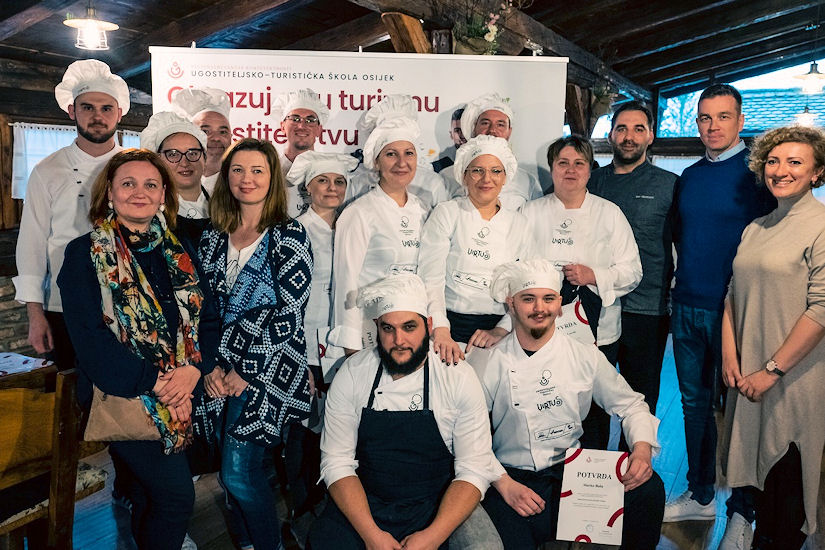 – Program koji je trajao 80 sati sastojao se od teoretskog dijela u trajanju 15 sati koji se odvijao u našoj školi, gdje su predavači bili nastavnici strukovnih predmeta. Dio praktične nastave pak održao se u praktikumu za kuharstvo u Ugostiteljsko-turističkoj školi u Osijeku, dok se ostatak od 45 sati održao se u restoranima Crna svinja u Čepinu i Citadela u Vardarcu. Pripremala su se razna jela, hladna i topla predjela, juhe, glavna jela, riblja i mesna te desertna jela. Izdvojio bih šarana na rašljama, fiš, perkelt od soma, makovnjaču, orahnjaču, salenjake, pogačice s čvarcima, poderane gaće, langošice. Naglasak je stavljen na tradicionalnu kuhinju Slavonije i Baranje koju želimo podići na višu razinu i uvrstiti je na UNESCO-v popis nematerijalne kulturne baštine – naglasio je Ivan Gašpić, strukovni nastavnik kuharstva u Ugostiteljsko – turističkoj školi Osijek.