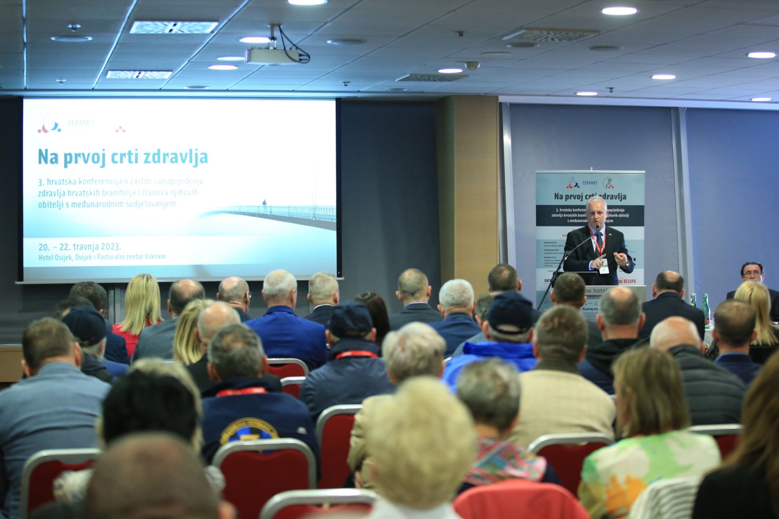 U Osijeku je danas (20. travnja 2023. godine) otvorena 3. Hrvatska konferencija o zaštiti i unaprjeđenju zdravlja hrvatskih branitelja i članova njihovih obitelji s međunarodnim sudjelovanjem pod nazivom „Na prvoj crti zdravlja“.