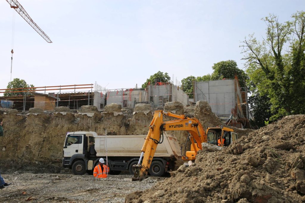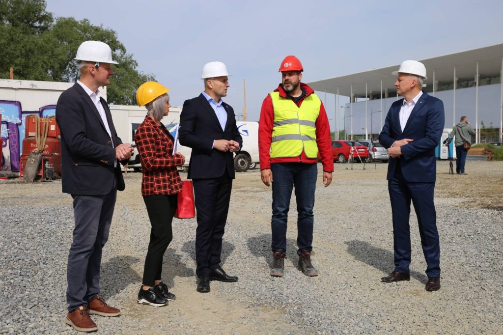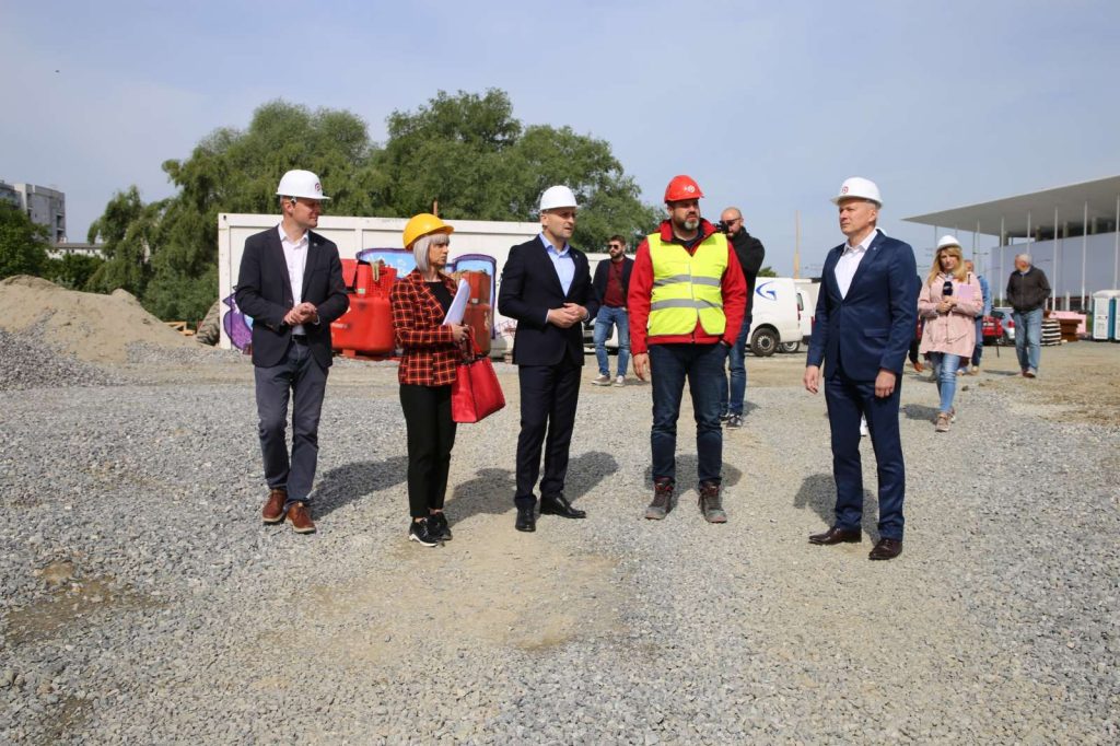 Gradilište novog objekta I. gimnazije Osijek na lokaciji uz križanje Strossmayerove i (sjevernog produžetka) Kanižlićeve ulice u Osijeku, danas (9. svibnja 2023. godine) obišao je župan Ivan Anušić sa suradnicima.