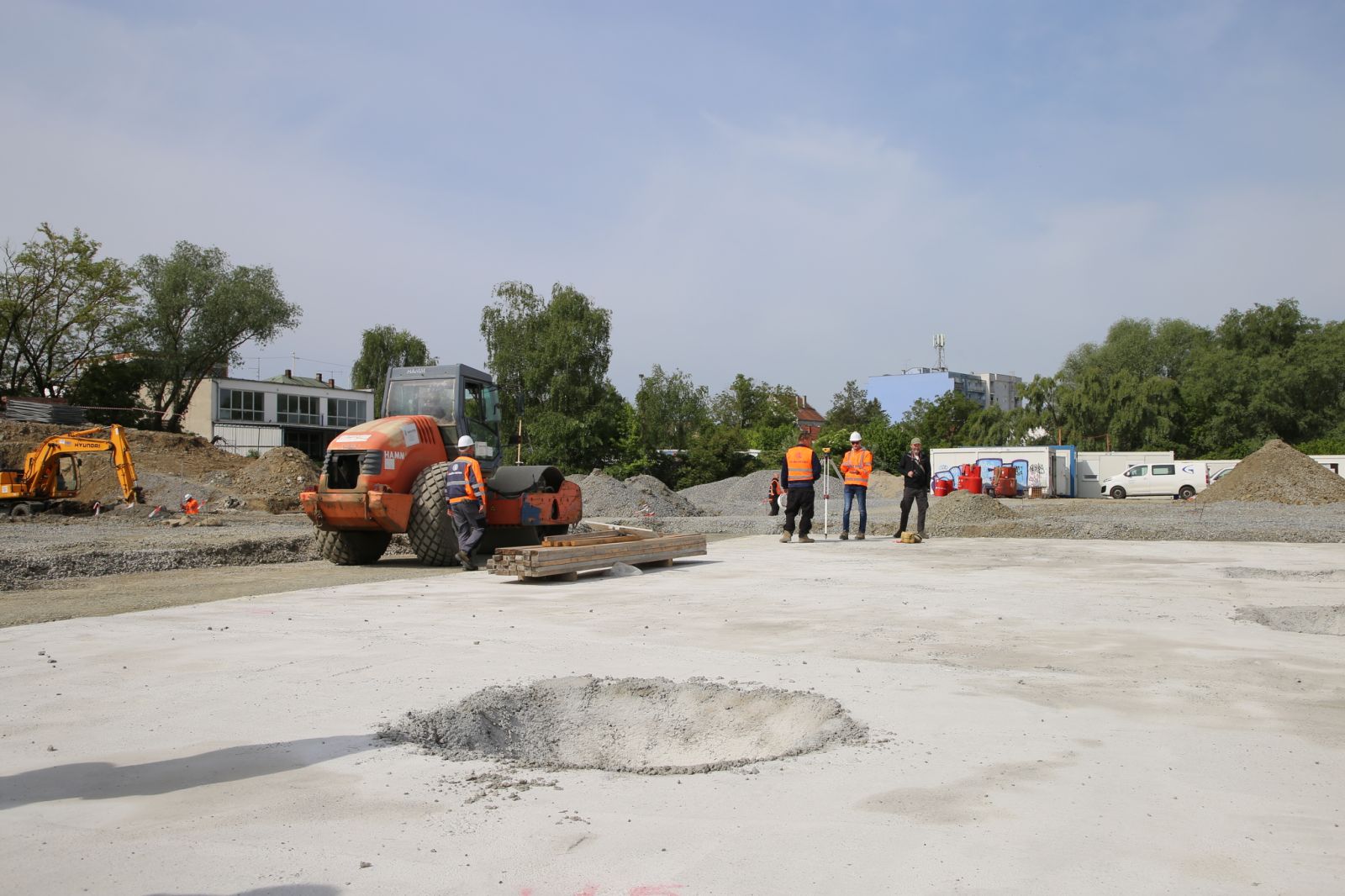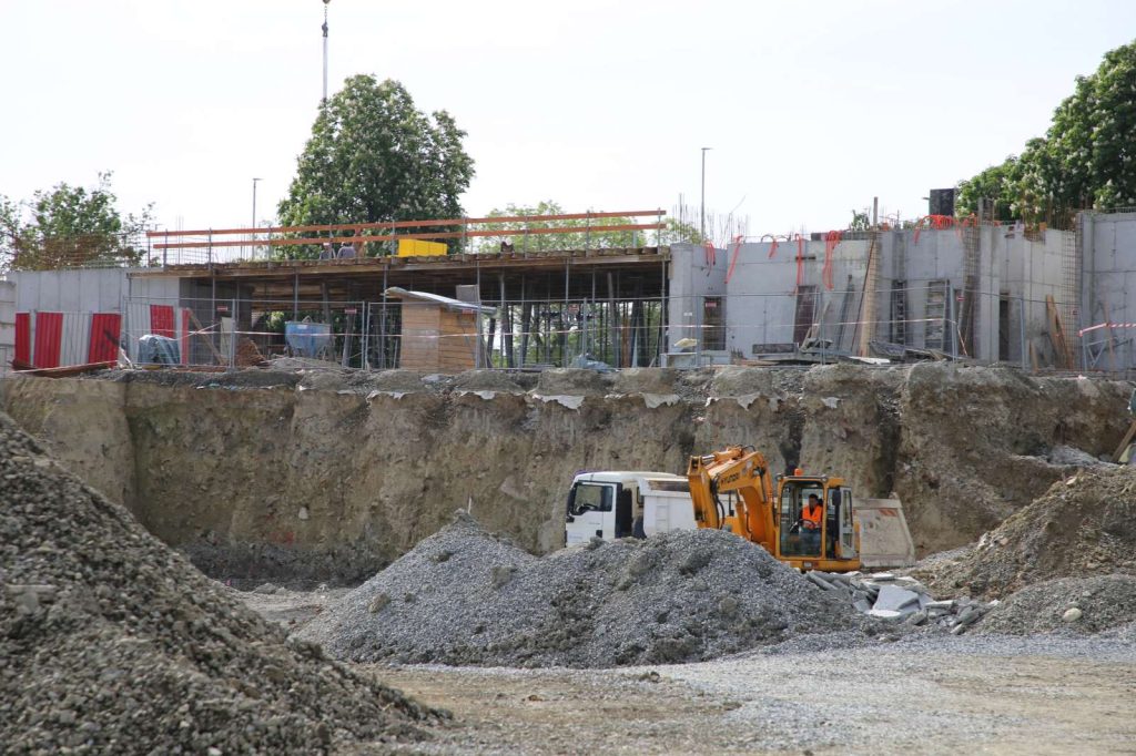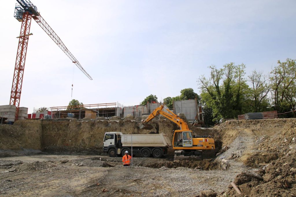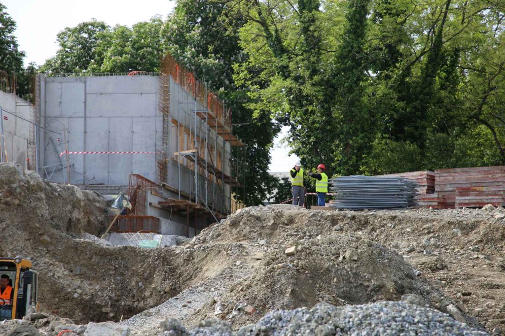 Trenutno je u tijeku završna faza temeljenja konstrukcije, koju zbog specifičnog terena odlikuje postavljenje puno pilota, ali i izvođenje armirano-betonskih radova, radova oko objekata na budućim parkiralištima i sportskim terenima, postavljanje instalacija odvodnje i – kako ističe inženjer radilišta Petar Dominković – u tijeku su izazovni, zanimljivi i zahtjevni radovi.