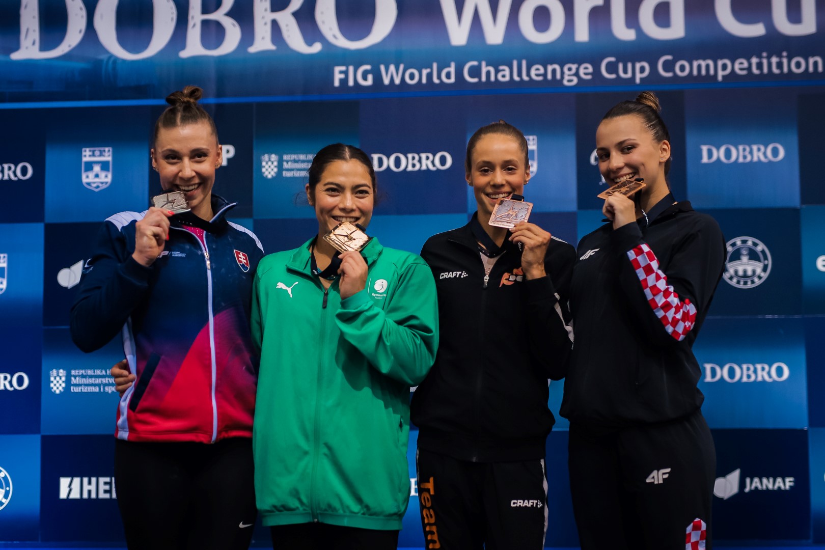 Za dvostruko hrvatsko postolje u Osijeku i svoje drugo u karijeri, nakon srebra prije dva tjedna u Varni, pobrinula se brončana Tina Zelčić na gredi. U finalu u kojem smo imali dvije reprezentativke, Tina je 3. mjesto podijelila s Nizozemkom Naomi Visser (12.666, start 4.6), a s istom ocjenom, no startom 4.7 peta je bila Christina Zwicker. Zlatna je Australka Georgia Godwin (13.900), a srebrna Slovakinja Barbora Mokosova (12.700).