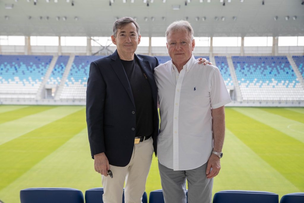 Glavni sponzor NK Osijek, gospodin Lorinc Meszaros, obišao je u četvrtak novi stadion i trening kamp Bijelo-plavih te iskazao zadovoljstvo dovršetkom radova i činjenicom da će isti uskoro biti poprište natjecateljskih utakmica. Gospodin Meszaros je obišao stadion u društvu predsjednika Uprave Ferenca Sakalja, članova Uprave Valentine Koprivnjak i Vladimira Čohara, voditeljice Ureda uprave Ane Macan i sportskog direktora Ivice Kuleševića, prošao sve prostorije i travnjak, razgovarao s glavnim trenerom Stjepanom Tomasom i poželio Bijelo-plavima sreću u nadolazećim izazovima.