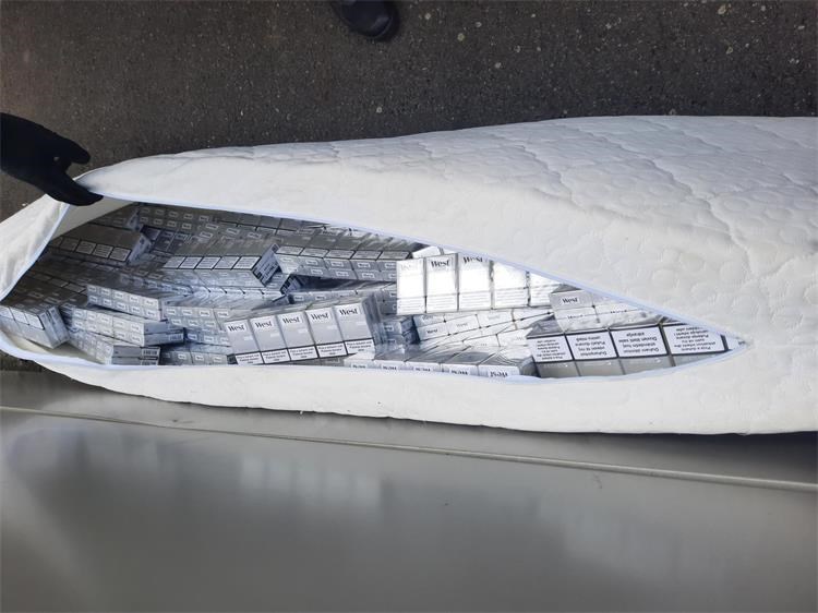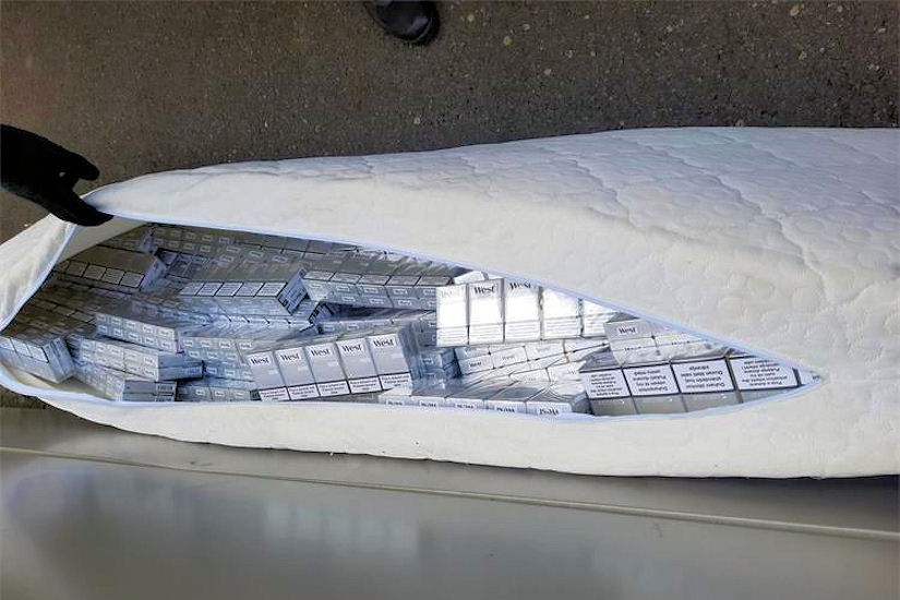 – Otvaranjem madraca otkriveno je ukupno 16.800 komada cigareta marke West Silver.
