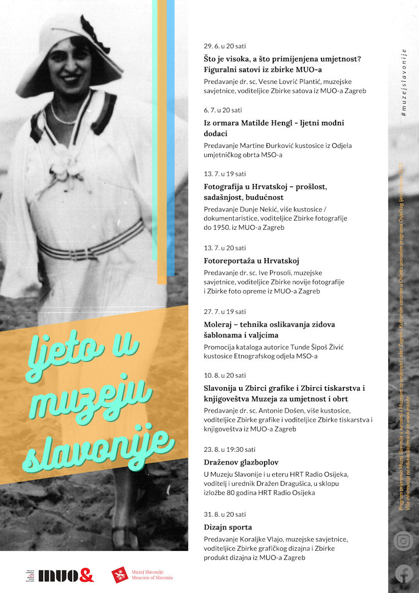 – I ovo ljeto smo za naše drage posjetitelje pripremili brojna predavanja, promociju kataloga, ali i emitiranje u eter iz Muzeja Slavonije povodom obilježavanja Osječkog ljeta kulture 2023. u suradnji s Muzejom za umjetnost i obrt iz Zagreba, HRT Radiom Osijek, Kulturnim centrom iz Osijeka – dodaju iz Muzeja.