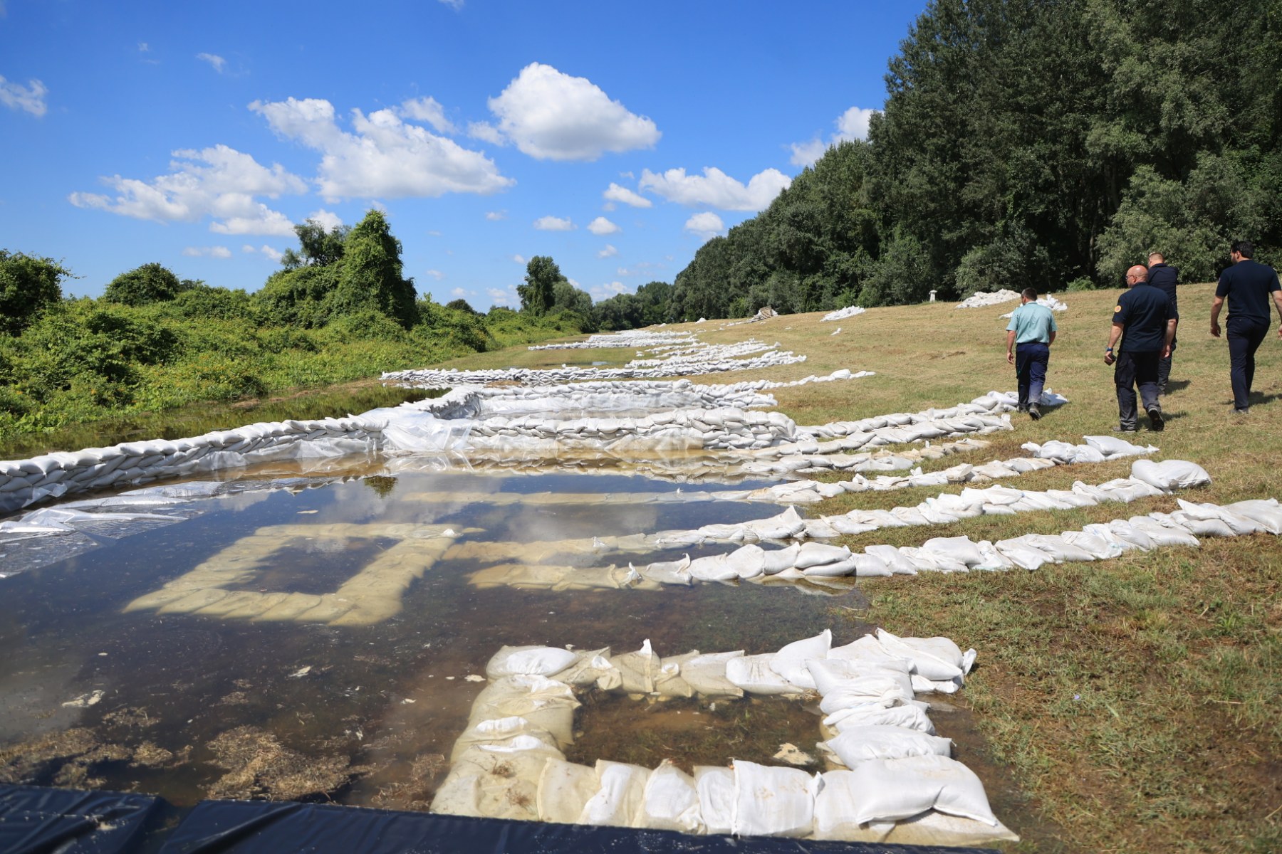 Direktor Vodnogospodarskog odjela za Dunav i Donju Dravu Hrvatskih voda Željko Kovačević naglasio je kako je u toj intervenciji u ojačanje nasipa ugrađeno 20.000 vreća s pijeskom, i to zbog saniranja procjednih voda.