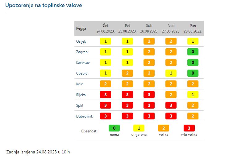 Dakle, danas i sutra za Osijek je umjerena opasnost od toplinskog vala, za subotu i nedjelju velika, a potom opet u ponedjeljak umjerena.