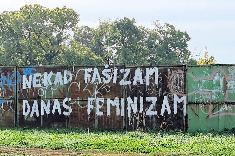 Grafit je i ‘plitak’ i ‘dubok’, ali – bez ikakve rasprave svakako ružan i nazadan. Komparirati ‘fašizam’ i ‘feminizam’ je budalaština, ali uzeti u obzir da je netko to odlučio komparirati i pritom to napisao ‘na plotu’, već je za raspravu. Je li samo htio biti duhovit ili je autor zapravo ‘istresao’ bojom na ogradu svoja razmišljanja? Je li htio reći da je ‘feminizam’ agresivan? U svakom od mogućih scenarija je pretjerao ‘preko svih granica’. U narodu kažemo – ‘prećera ga’.