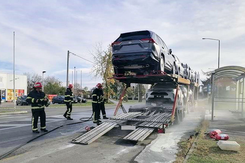 – Jučer, 8. studenog oko 8,50 sati u Ulici bana Josipa Jelačića u Tovarniku, tijekom vožnje je izbio požar na priključnom vozilu pridodanom na teretni automobil srpskih registracijskih oznaka kojim je upravljao 62-godišnji državljanin Srbije, prevozeći pritom osam rabljenih automobila – javlja policija danas, dodajući kako su pripadnici DVD-a Tovarnik ugasili požar.