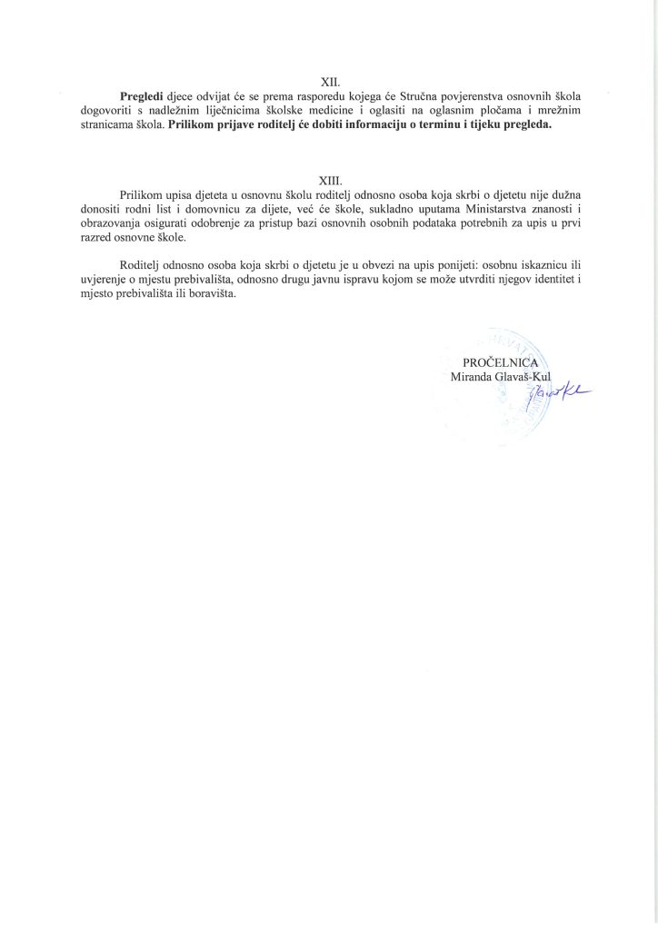 – Osnovne škole će obaviti predprijave školskih obveznika i na svojim oglasnim pločama i mrežnim stranicama istaknuti popis ulica svojeg upisnog područja i raspored pregleda djece. Predprijave u svim osnovnim školama i njihovim područnim školama i odjelima primat će se od 01. do 09. veljače 2024. godine u uredovnom vremenu tajništva škole.