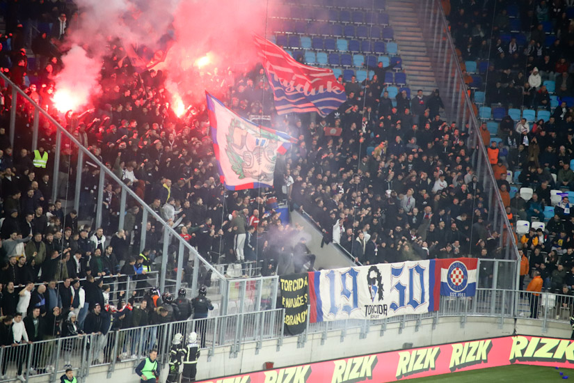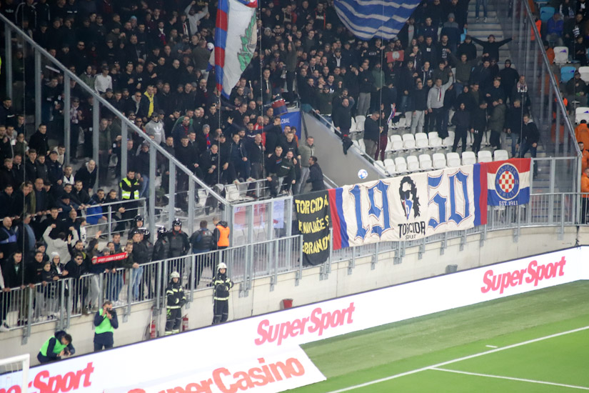 Za to vrijeme ‘policijski score’ je bio privedenih 5 navijača, od kojih 4 Hajduka i 1 Osijeka. Razlog u 67. minuti nismo znali, ali do te minute Torcida je već imala treću bakljadu, ‘tukli su topovski udari’, što sugerira da je sigurno priveden bio poneki – ‘pirko’. I da, na utakmici je, službeno je objavljeno, 11.711 osoba, što će reći da su pojedini pretplatnici ostali kod kuće ili pojedini nisu mogli ući, jer im se nisu slagali podatci na osobnoj i na ulaznici.