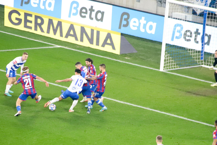 I taman, reći će stari – ‘ne lezi vraže’, jer vratnicu Osijeka ubrzo je ‘liznula’ jedna lopta, ali… Ali… Uslijedila je munjevita ‘odmazda’ Osijeka, Mierezova borba za loptu i naposljetku lopta u mreži Hajduka. Već su tribine ‘zagrmjele’, Opus slavio 1-0, da bi se dogodio (k)VAR. Nejašmić je prethodno igrao rukom i sav Mierezov posao otišao je u propast. ‘Tepamo’ mu ‘(k)VAR’, ali zapravo je bilo igranja rukom. Iz naše ‘objektivne’ perspektive – šteta.