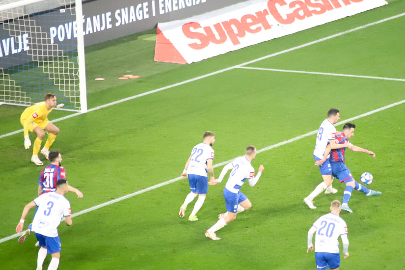 Krovinović, Kalinić, Uremović i gol. Jedno je Nejašmić bio ‘intermezzo’ tom golu, tu putanju lopte u 5-ercu Osijeka, praktički sa same linije gola, zakratko petom izbacio, ali sve skupa ‘šesnaest centimetara’. I od 57. minute utakmice Hajduk je vodio s 0-1.