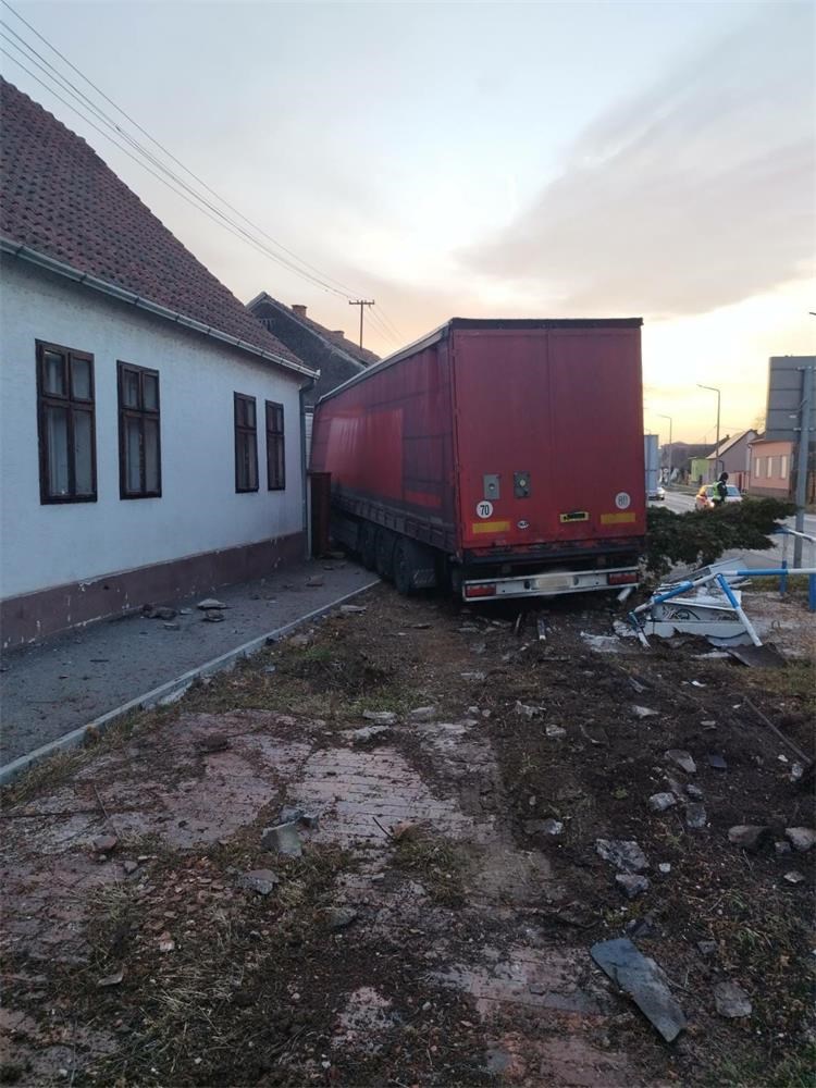 – Policijski službenici su na mjestu događaja obavili očevid kojim je utvrđeno kako se, oko 6,20 sati, vozač skupa vozila – teretnog automobila i poluprikolice slovenskih registracijskih oznaka, 40-godišnji državljanin Sjeverne Makedonije, nije kretao sredinom obilježene prometne trake kolnika Ulice Branka Radičevića u Mirkovcima, već je vozilo pomaknuo ulijevo, prešao preko lijeve prometne trake i bankine, sletio na zelenu površinu, gdje udara u crpnu stanicu za otpadne vode i ormar električnih instalacija, potom u ogradu obiteljske kuće 86-godišnjakinje i naposljetku u zid obiteljske kuće 43-godišnjakinje, koji od siline udara probija. U tom trenutku u prostoriji kuće u kojoj je urušen zid nalazila se maloljetnica.