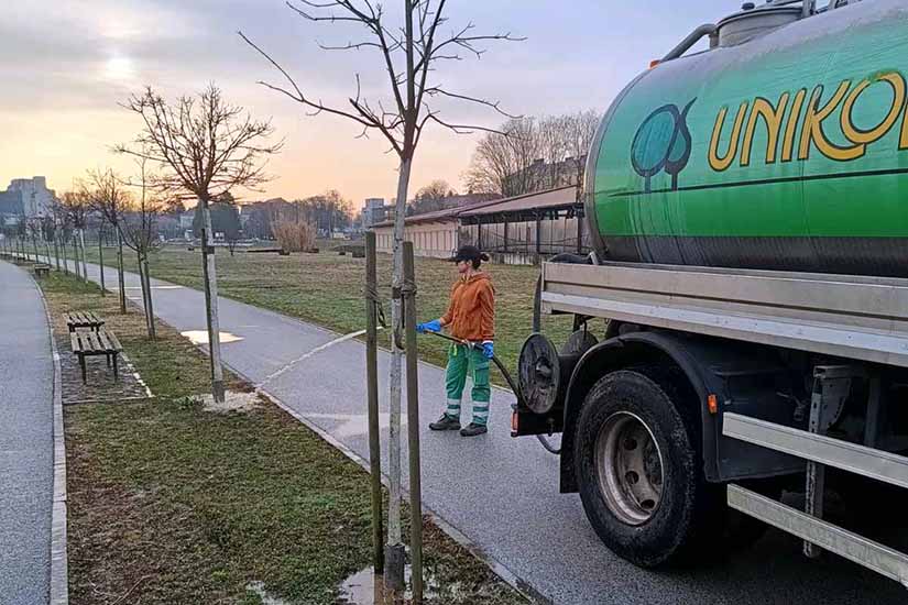 – Mladim i starijim stablima uz prometnice, nogostupe i biciklističke staze narušena je kvaliteta tla zimskim soljenjem, nabijanjem tla vozilima i prometnim onečišćenjem. Provodimo dva tretmana (tijekom veljače i ožujka) vodom i posebnim pripravkom. Učinci tretmana su poboljšanje kvalitete tla, povećanje mikrobiološke aktivnosti tla važne za apsorpciju vode i hranjiva iz tla kroz korijen drveta, suzbijanje patogenih mikroorganizama – govore iz Unikoma.