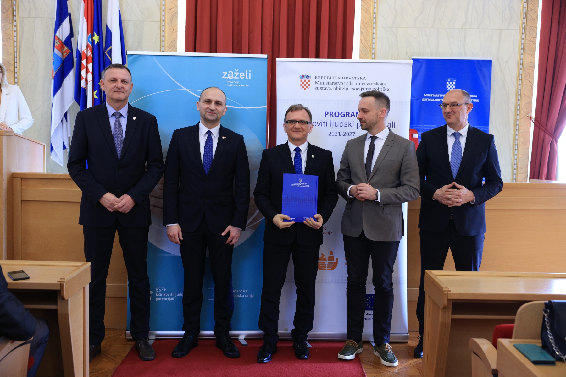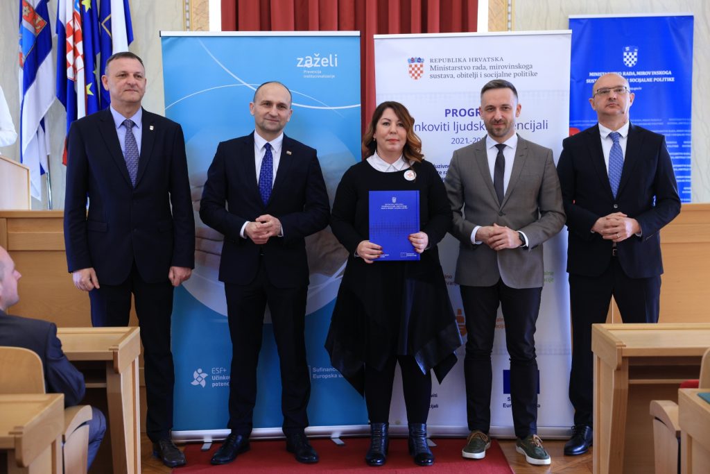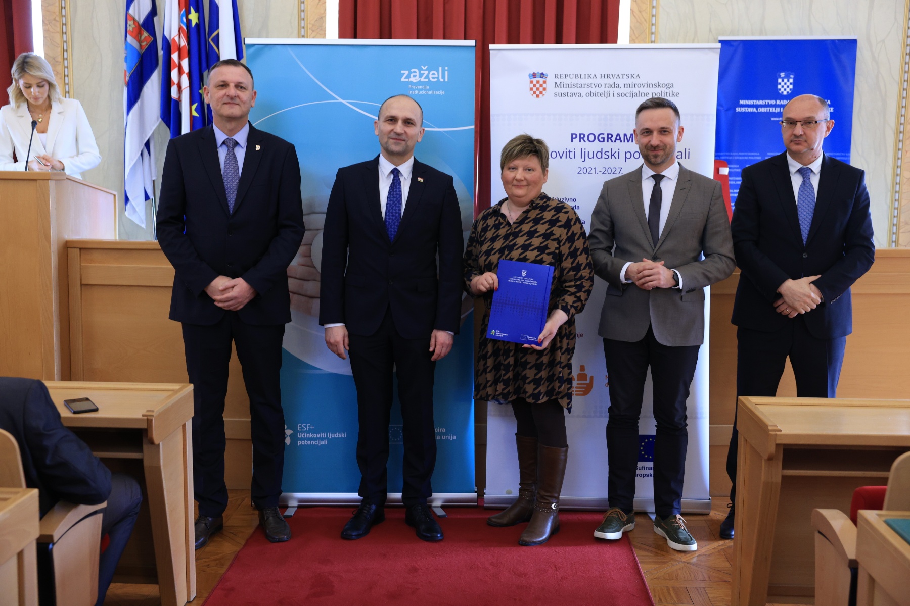 U okviru Poziva „Zaželi – prevencija institucionalizacije“ danas (18. ožujka 2024. godine) ministar rada, mirovinskoga sustava, obitelji i socijalne politike Marin Piletić uručio je ugovore o dodjeli bespovratnih sredstava predstavnicima 31 jedinice lokalne samouprave, udruga i institucija s područja Osječko-baranjske i Virovitičko-podravske županije. Na događaju održanom u sjedištu Osječko-baranjske županije u Osijeku sudjelovali su također potpredsjednik Vlade i ministar obrane Ivan Anušić i ravnatelj Hrvatskog zavoda za zapošljavanje Ante Lončar, a sve nazočne pozdravio je obnašatelj dužnosti župana Osječko-baranjske županije Mato Lukić.