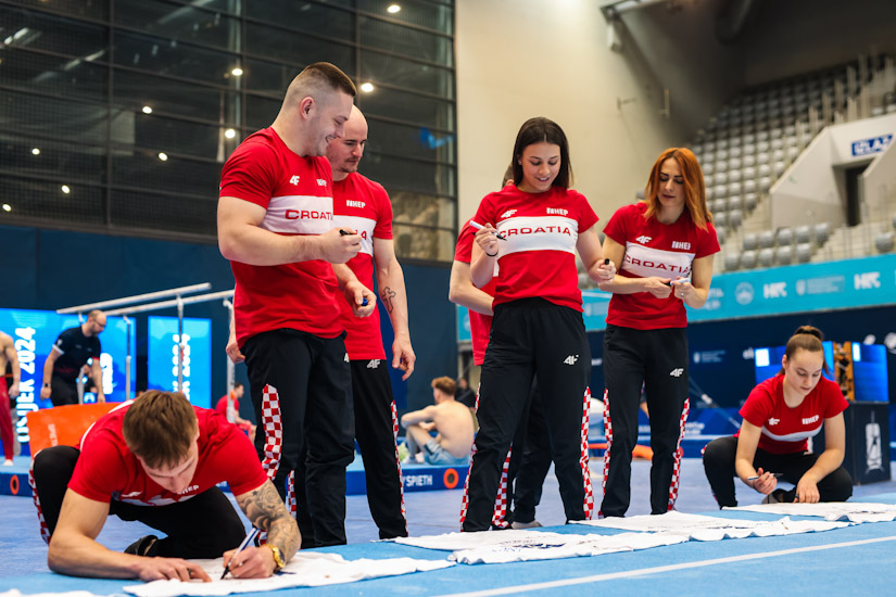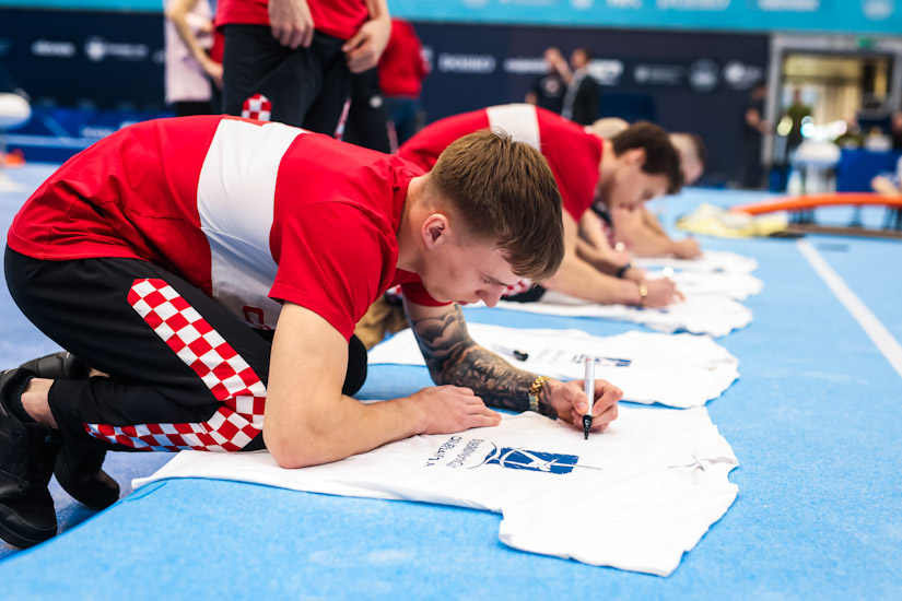 U Osijek je došlo više od 100 svjetskih gimnastičara i gimnastičarki, niz olimpijskih, svjetskih i europskih medaljaša, a hrvatsku reprezentaciju sastavljenu od 9 sportaša predvode srebrni olimpijci Tin Srbić i Filip Ude te domaći dečko, Osječanin Aurel Benović koji će nastupiti oba kvalifikacijska dana, prvo sutra na tlu, a onda u petak i na preskoku. Na konju s hvataljkama sutra će uz Udea nastupiti njegov klupski kolega iz GK MZ Macan, Marko Sambolec, uz Benovića na tlu i Marko Jovičić, a kod djevojaka sutrašnje nastupe čekaju Tijana Korent na preskoku te Sara Šulekić i Sofia Mešter na dvovisinskim ručama. U petak će uz Tina Srbića na preči i Benovića na preskoku, mjesto u finalu tražiti i Tina Zelčić na gredi.