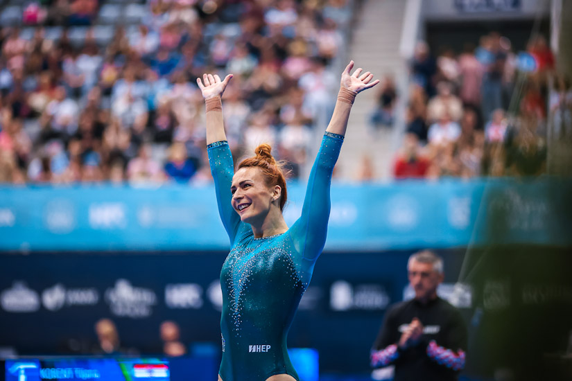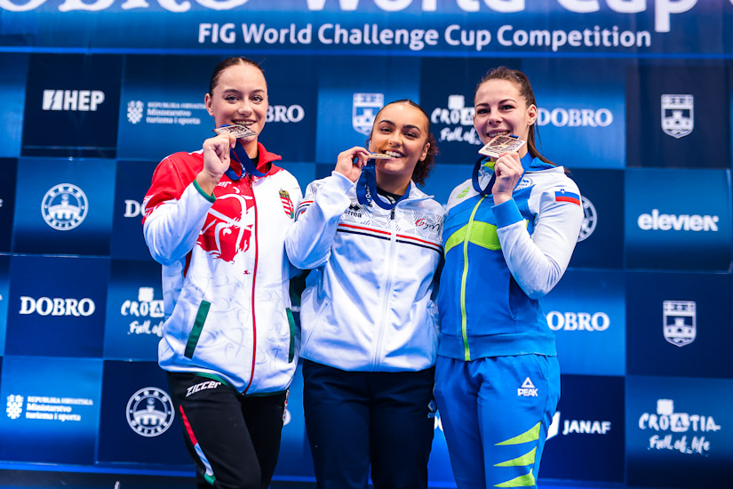 U svom 11. finalu u Osijeku i 46. u karijeri, iskusna Tijana Korent završila je kao peta na preskoku s ocjenom 12.683 (12.566 i 12.80; 4.2 i 4.2). Slavila je još jedna nevjerojatna Francuskinja, Coline Devillard s ocjenom 13.700 (14.500 i 12.900).