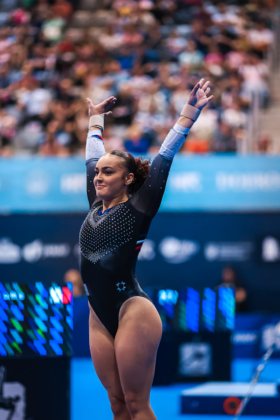 U svom 19. finalu u karijeri Aurel Benović nije uspio pokazati ono što inače odrađuje. Zbog niza pogrešaka pri doskocima završio je kao 7. na tlu sa 13.550 (start 6.3) u finalu u kojem je slavio njegov klupski kolega, Ukrajinac Illia Kovtun (14.400).