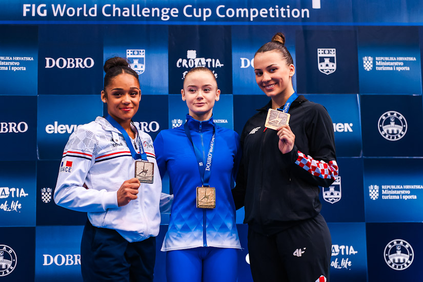 Tinova klupska kolegica iz ZTD Hrvatskog sokola, Tina Zelčić, broncom je reprizirala prošlogodišnji Osijek. Do postolja je došla s ocjenom 13.000 (4.8), a na njemu su još bile zlatna Ukrajinka Anna Lashchevska (14.000; 5.8) i srebrna Francuskinja Melanie de Jesus dos Santos (13.133; 5.4).