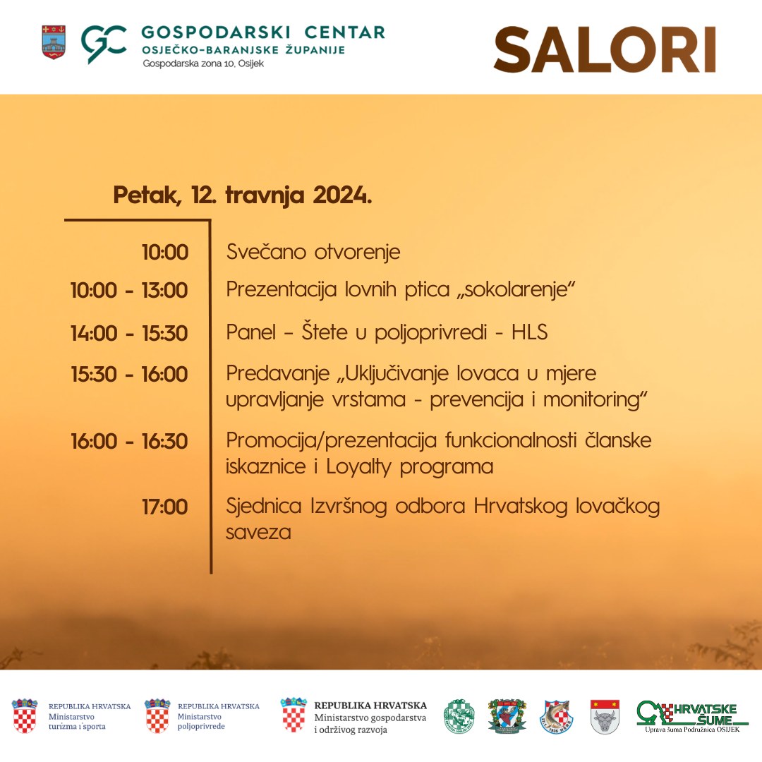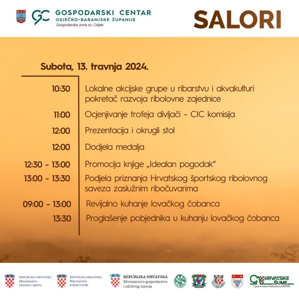– Na ovogodišnjem SALORI sajmu lova, ribolova i turizma očekuje nas zanimljiv program događanja koji uključuje razna predavanja, konferencije, natjecanja, izložbe i radionice. Pridružite nam se! – pozvali su iz Gospodarskog centra, objavivši cijeli raspored niza događanja, kojeg možete vidjeti niže…